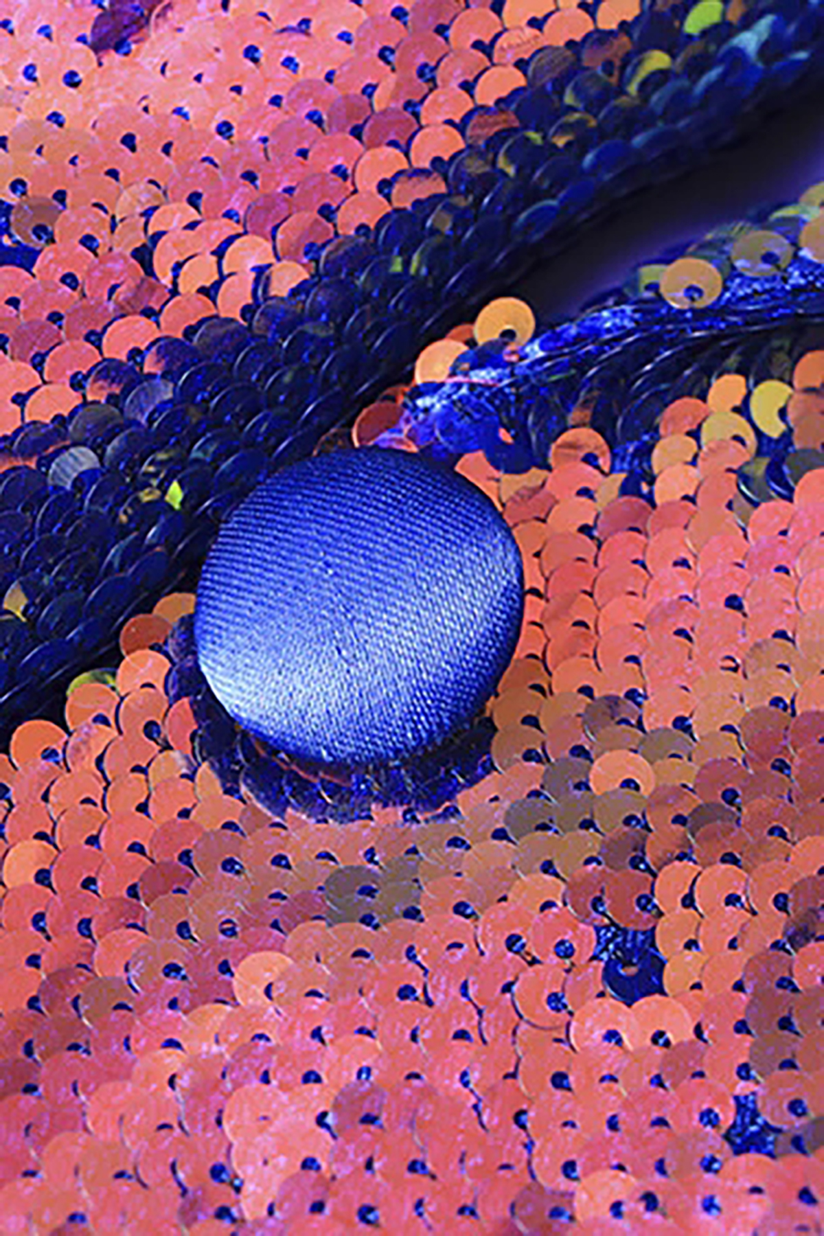 Iridescent Sequin Lapel Collar Long Sleeve Cinch Waist Metallic Party Blazer 132565