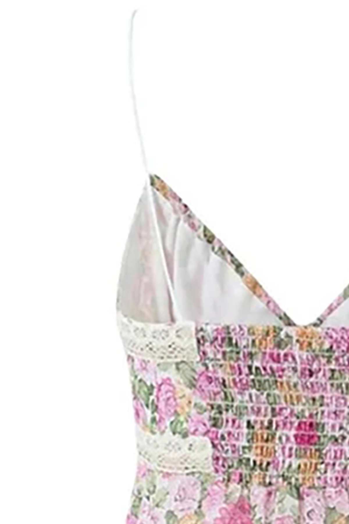 Sexy Floral Tie Front V Neck Spaghetti Strap Lace Trim Smocked Tank Top 133053
