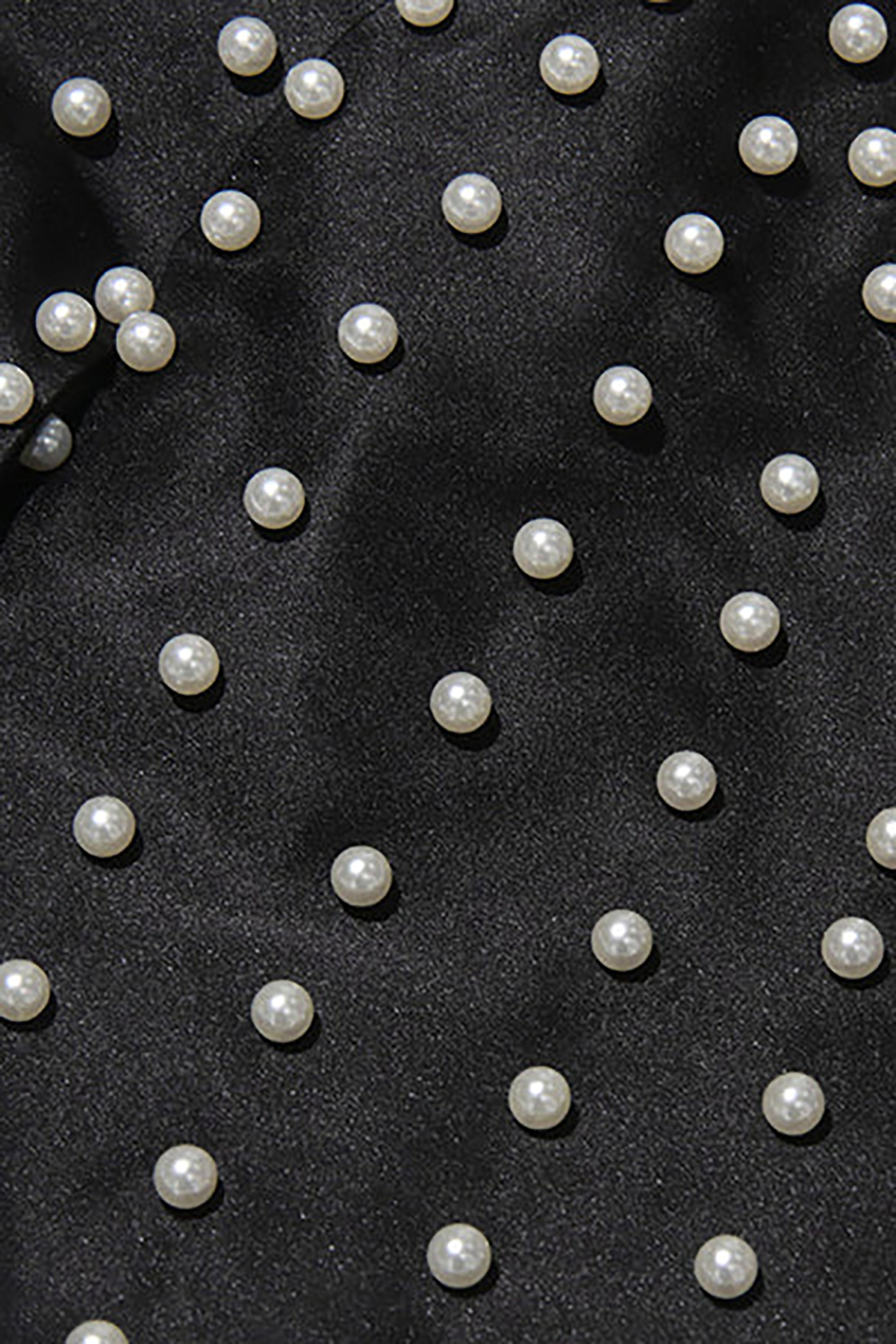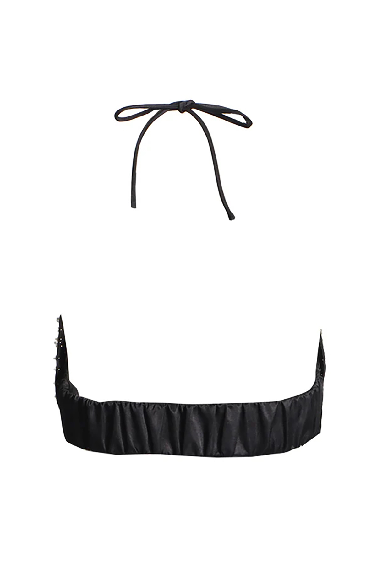 Silky Satin Halter Ruched Backless Summer Faux Pearl Crop Rosette Top 133065
